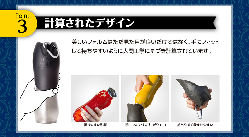 手にフィットして持ちやすいように計算され、大きな開口部で洗いやすい!